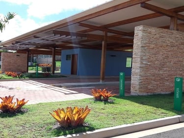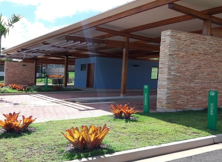 Infraestrutura completa para condomínios e empreendimentos, como guaritas, portões, quadras poliesportivas e áreas de lazer, combinando funcionalidade e estética.